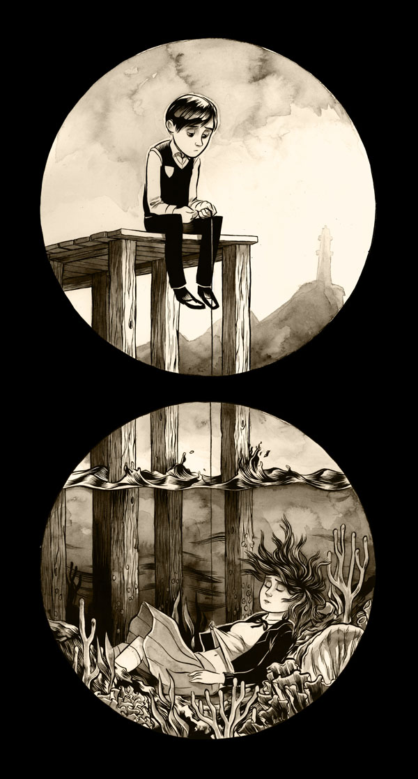 A nibble from beneath Original post here. Sourced to actegratuit via pencilofdoom. Original text: actegratuit: karl Kwasny on tumblr!