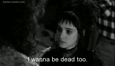 Original post here. Animated .gif contains the caption “I wanna be dead too.” Sourced to kwitan via bleedingbetty1960.