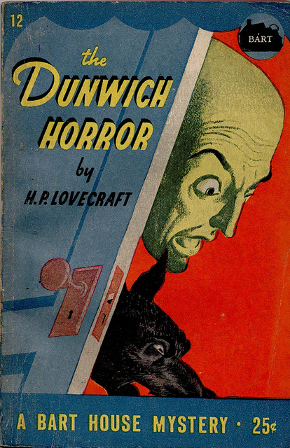 Original post here. Image contain the text “The Dunwich Horror, by H.P. Lovecraft. A Bart House Mystery. 25¢.” Sourced via ghastlydelights. Original text: