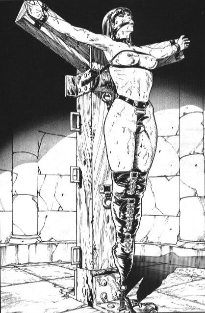 Dungeon crucifixion Diligent efforts have been unable to uncover any specific provenance for this manga-style image.