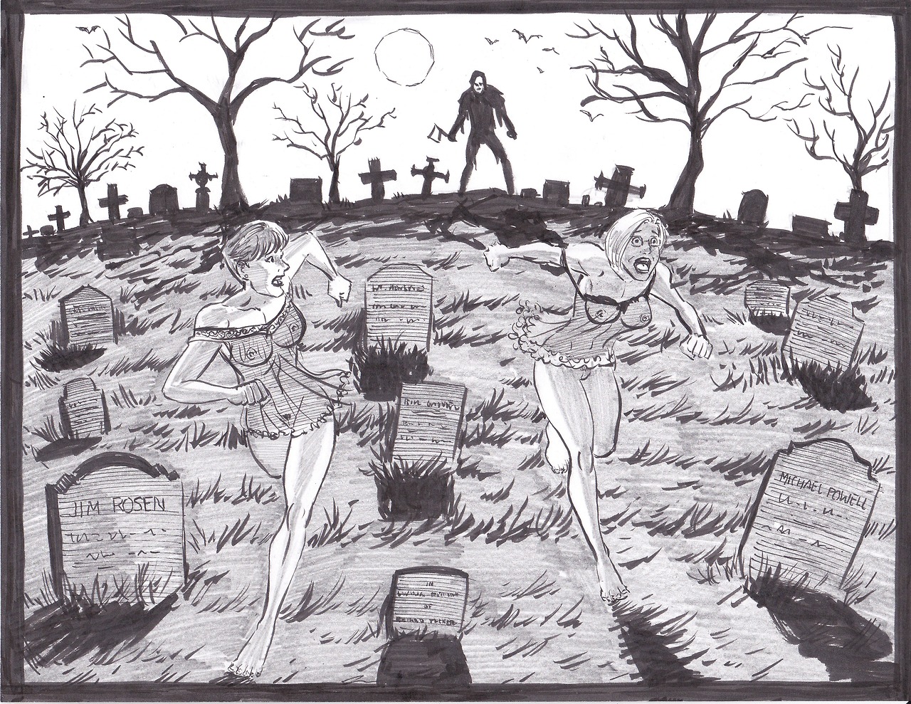 Commission. for nudity. Two women being chased through a cemetery by some undead psycho.