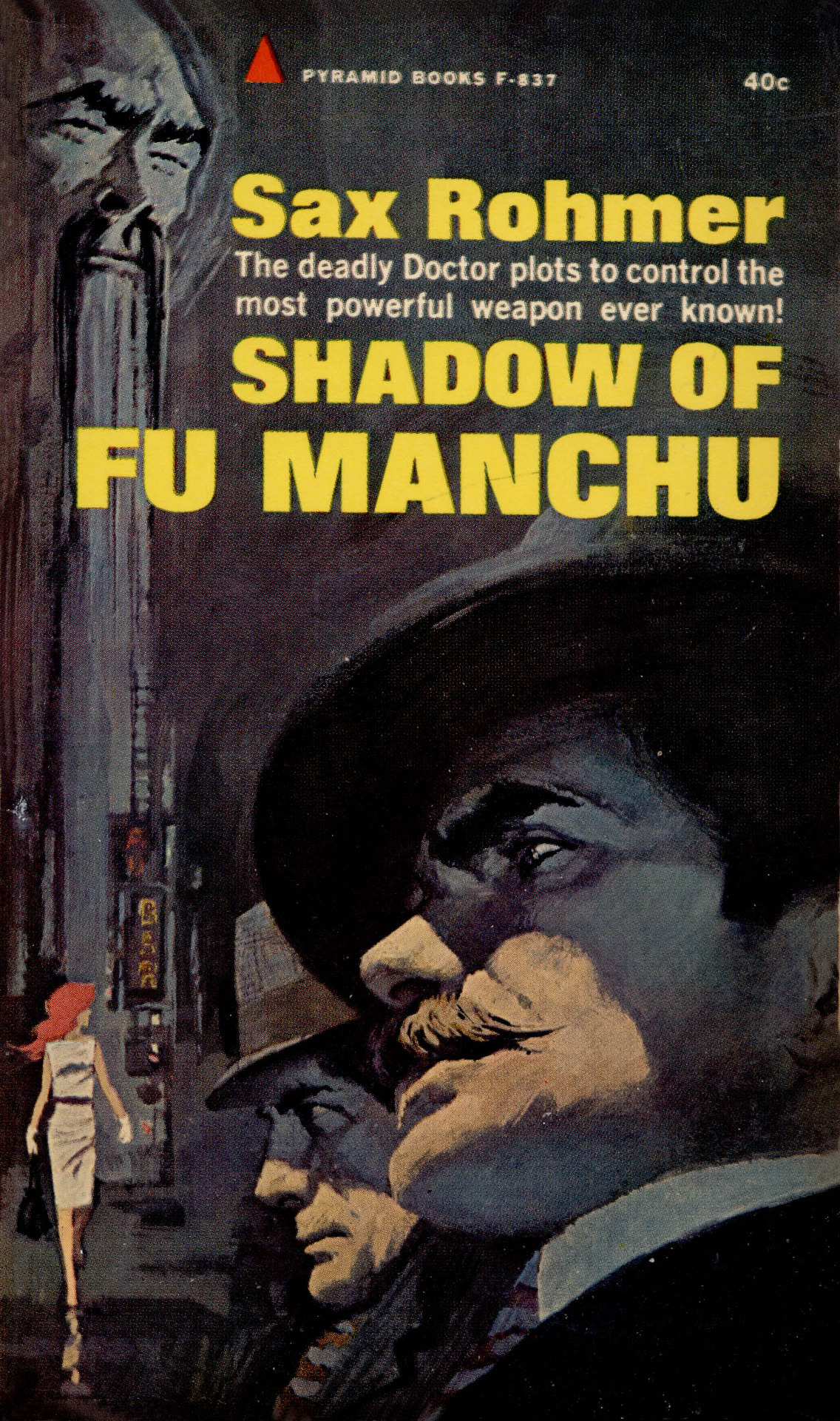 Image contains the text “Sax Rohmer. Shadow of Fu Manchu. The deadly Doctor plots to control the most powerful weapon ever known.”