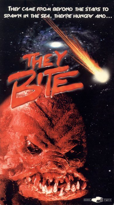 The VHS box art and the poster for the 1996 film “They Bite”. I love the tagline on that poster. ”They Live… They Suck… They Bite.” If you take off the first one, I’m pretty sure the other verbs there could be used as adjectives to describe this film.
