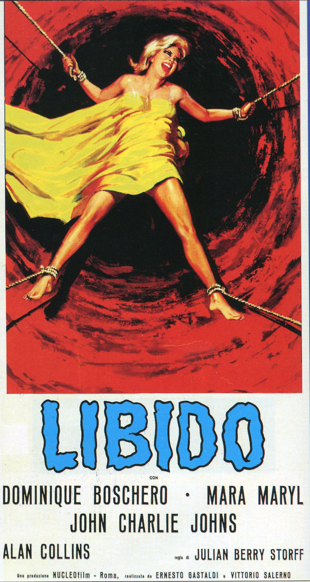 Original post here. Image contains the text “Libido, con Dominique Boschero, Mara Maryl, John Charlie Johns, Alan Collins. Regia de Julian Berry Storff. Una produzione NUCLEOfilm, Roma. Realizzata da Ernesto Gastaldi e Vittorio Salerno.” Original text “Promotional poster for Libido (Italy, 1965).”