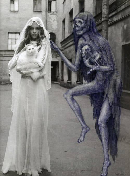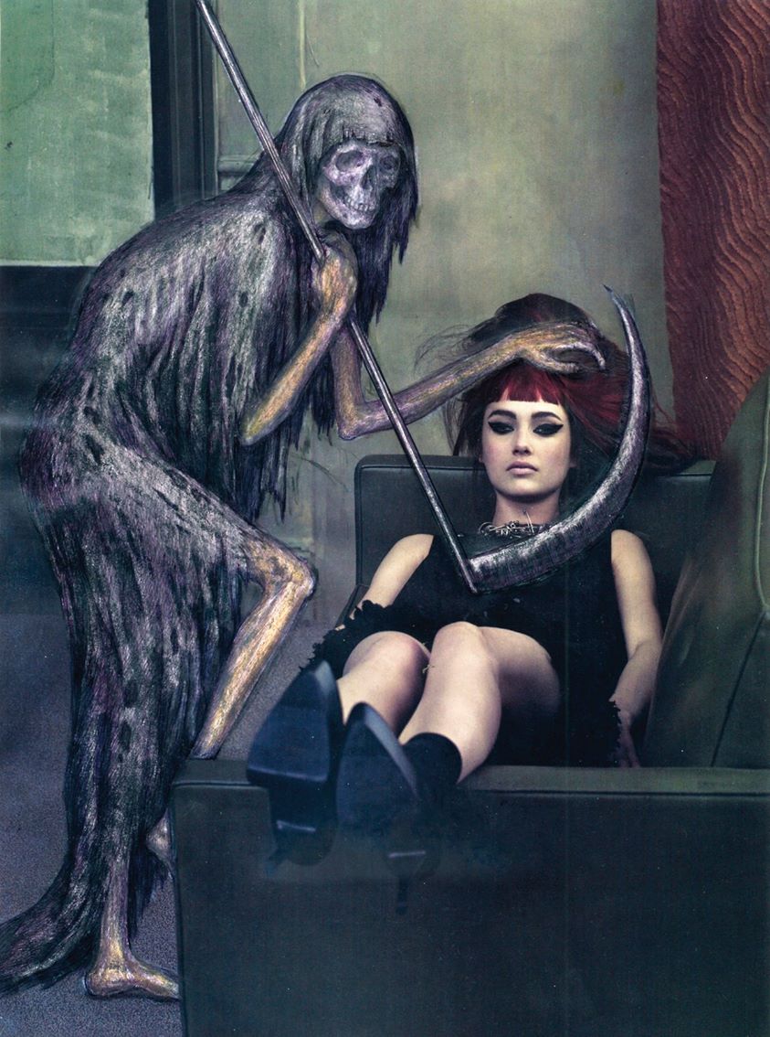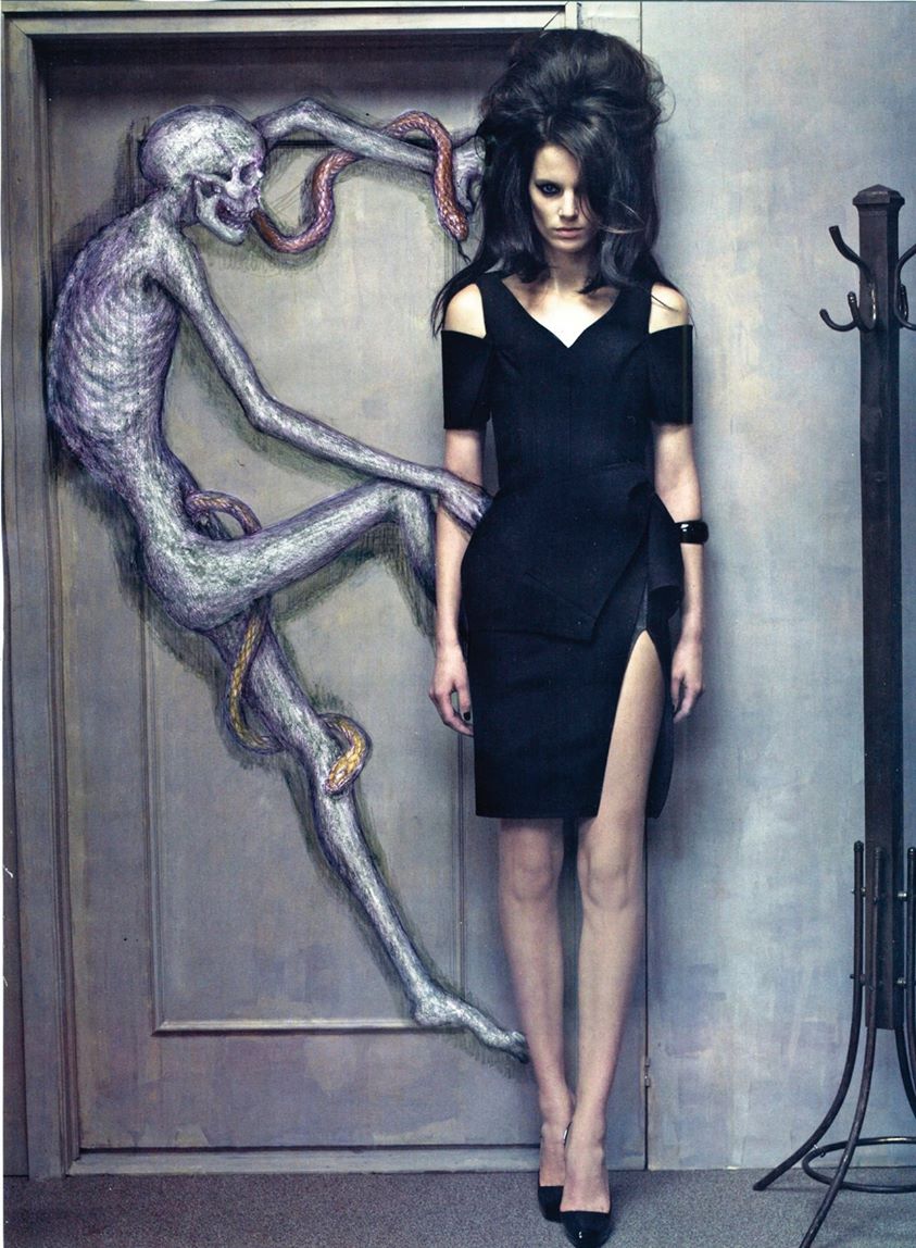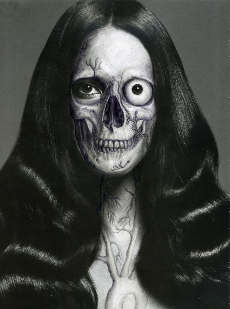 Japanese artist Fumie Sasabuchi reworks the pages of fashion magazines by deconstructing the original image and the body in the image. She uses the image and idea of death to explore a surface, creating a series of hybrid body images in which promotional aesthetic is fused with material naturalistic anatomical study.
