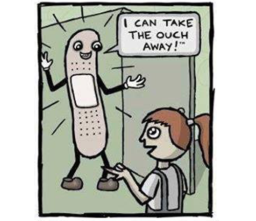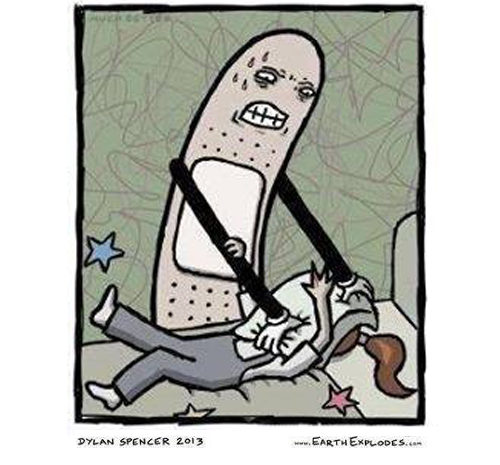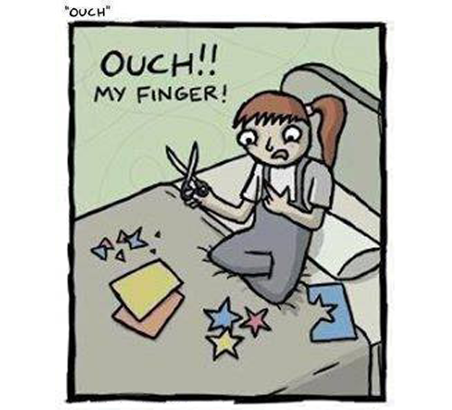 Original post here. Images are a series of panels containing the balloons (1) “Ouch, my finger!” (2) “I can take the ouch away” and a caption “Dylan Spencer 2013. Earth Explodes.” Sourced to earthexplodes.com via nerdstuff45. Original text: