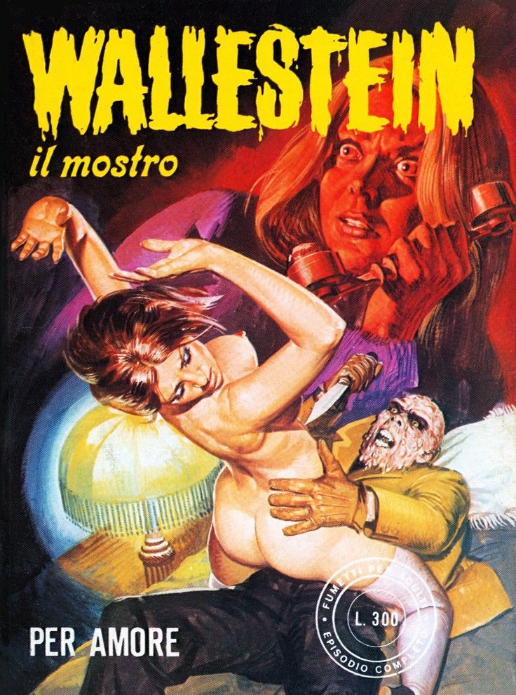 Original post here. Image is a cover of the Italian fumetto Wallestein il mostro. Comicvine has a gallery of covers here. Sourced on tumblr to eroticmacabre.