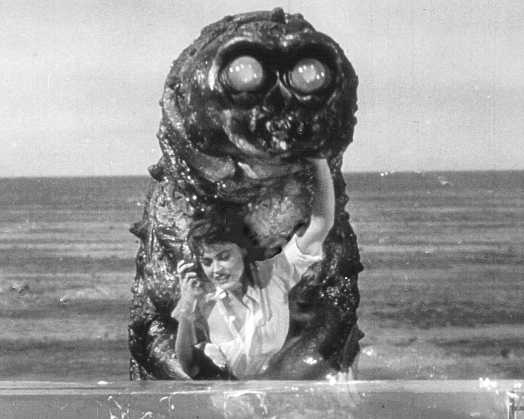 The monster that challenged the girl Original post here. Sourced via greatgrottu. Original text: mykillyvalentine: The Monster That Challenged the World (1957)