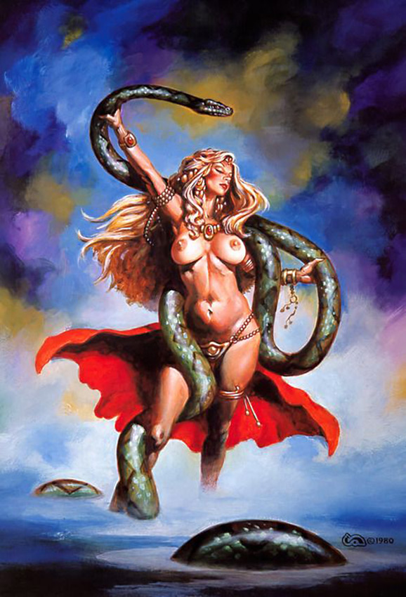 Snake mistress Original post here. Sourced to via reginaldjuice. Original text: swordofsteel: artist: Clyde Caldwell
