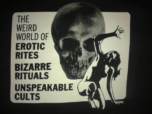 Original post here. Sourced to theelagers via the-bronx-remembers. Poster text reads “The weird world of erotic rites, bizarre rituals, unspeakable cults.”