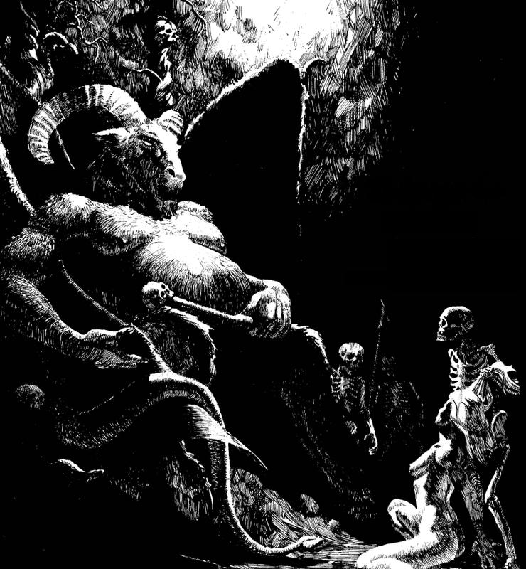 My original tumblr post was here.  This figure is readily recognizable as Orcus, Lord of the Undead, from various Dungeons and Dragons editions.   Original text:
