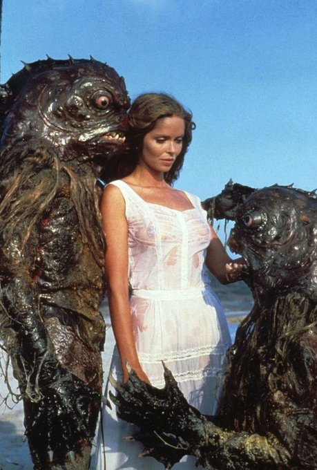 Barbara Bach on the set of Sergio Martino’s Screamers aka Island of the Fishmen (1979)