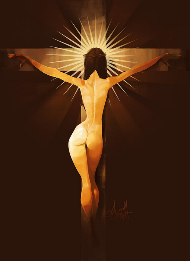 Reverse crucifixion Original post here. Sourced via girlveal. Original text: bluedogeyes: Rock me sexy Jesus by Otto Schmidt Artist blog / facebook