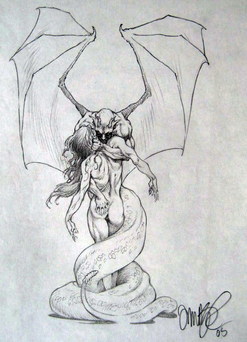 My original tumblr post was here. This image is serpent mother finished inks by Tim Vigil (dynapop). It comes to us via divine-defilement.